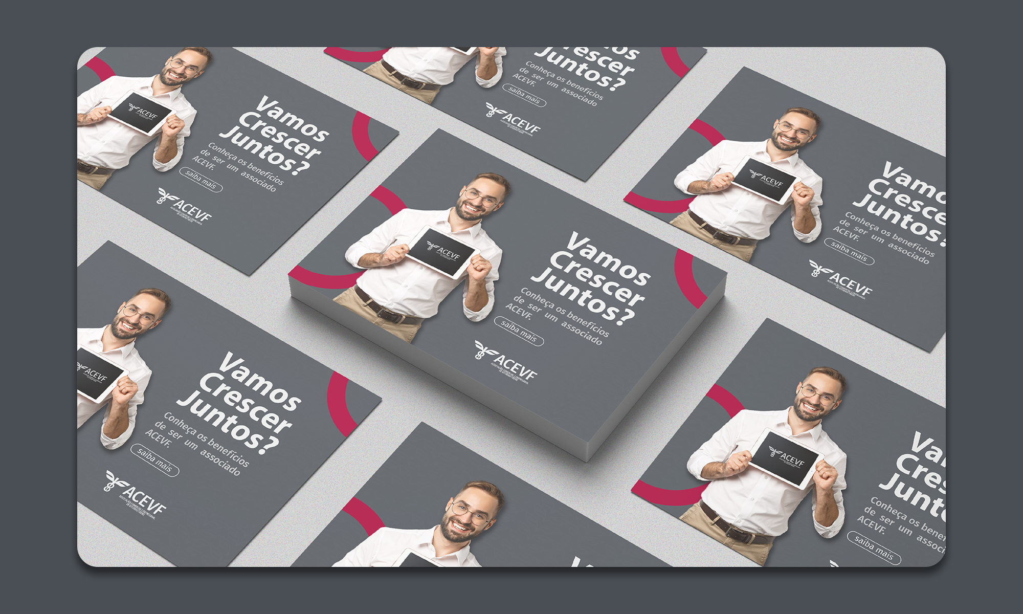 A Associação objetivava o crescimento e a adesão de mais empresários; uma tagline interessante e acolhedora foi criada para integrar todas as características e atributos pensados para o projeto.